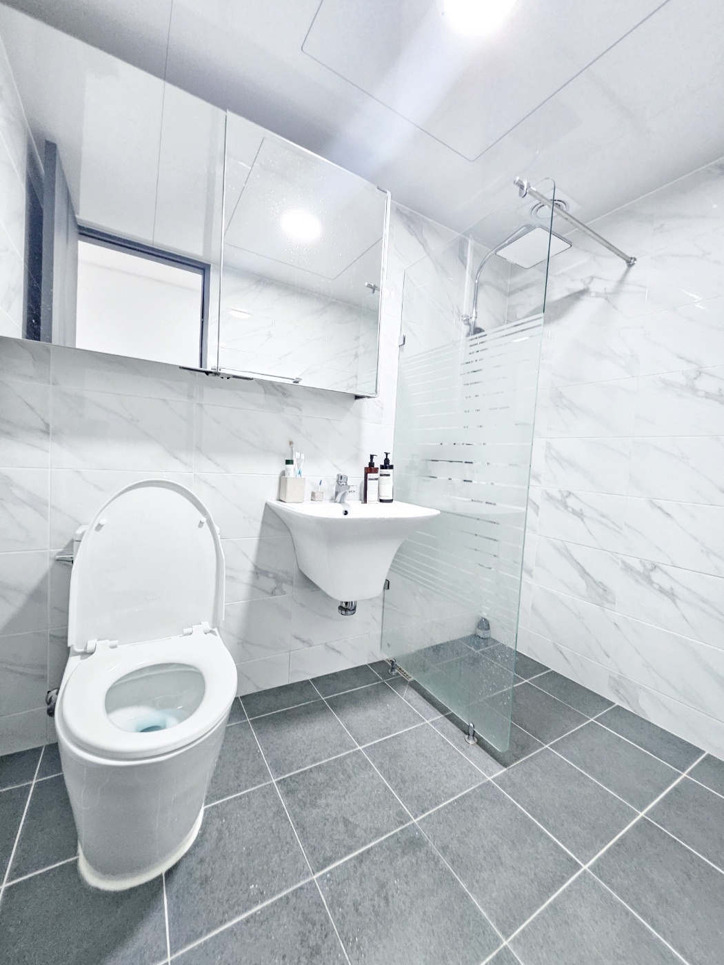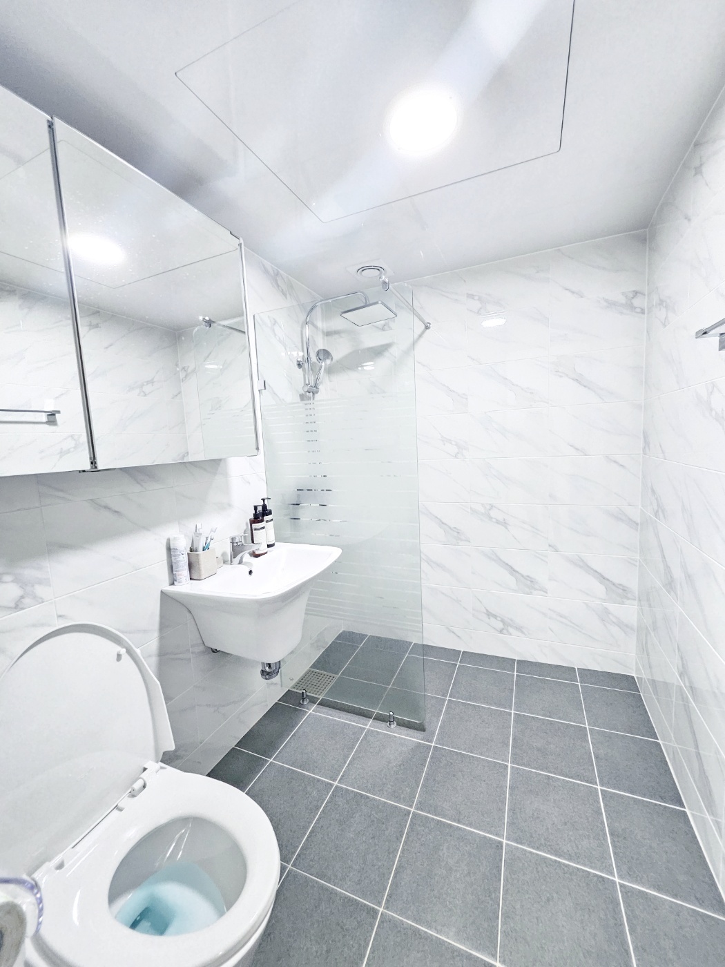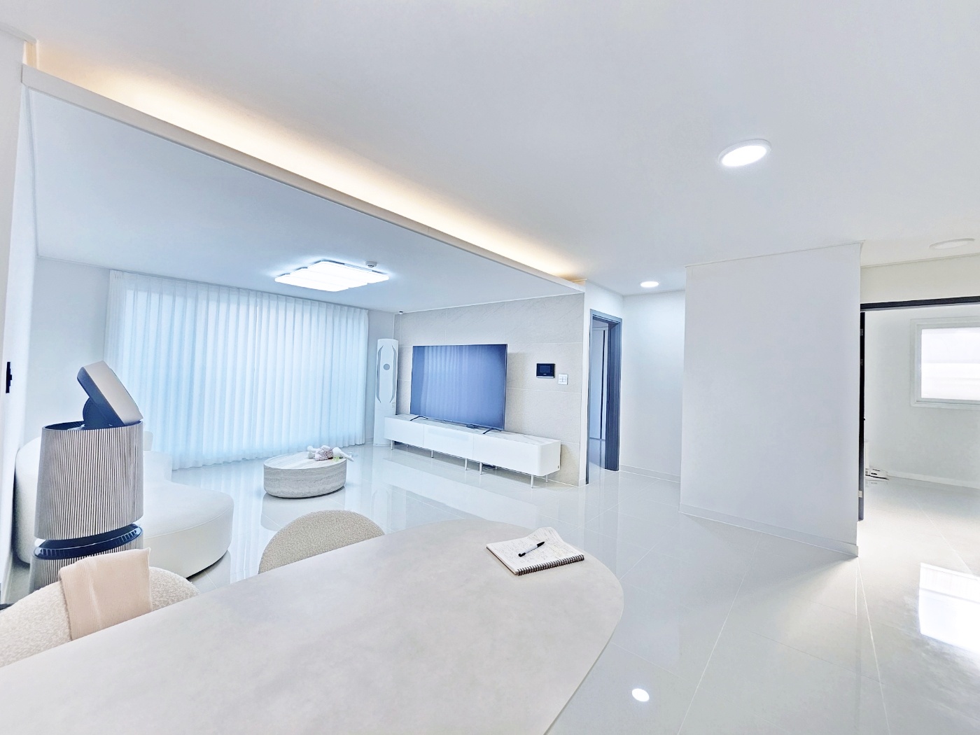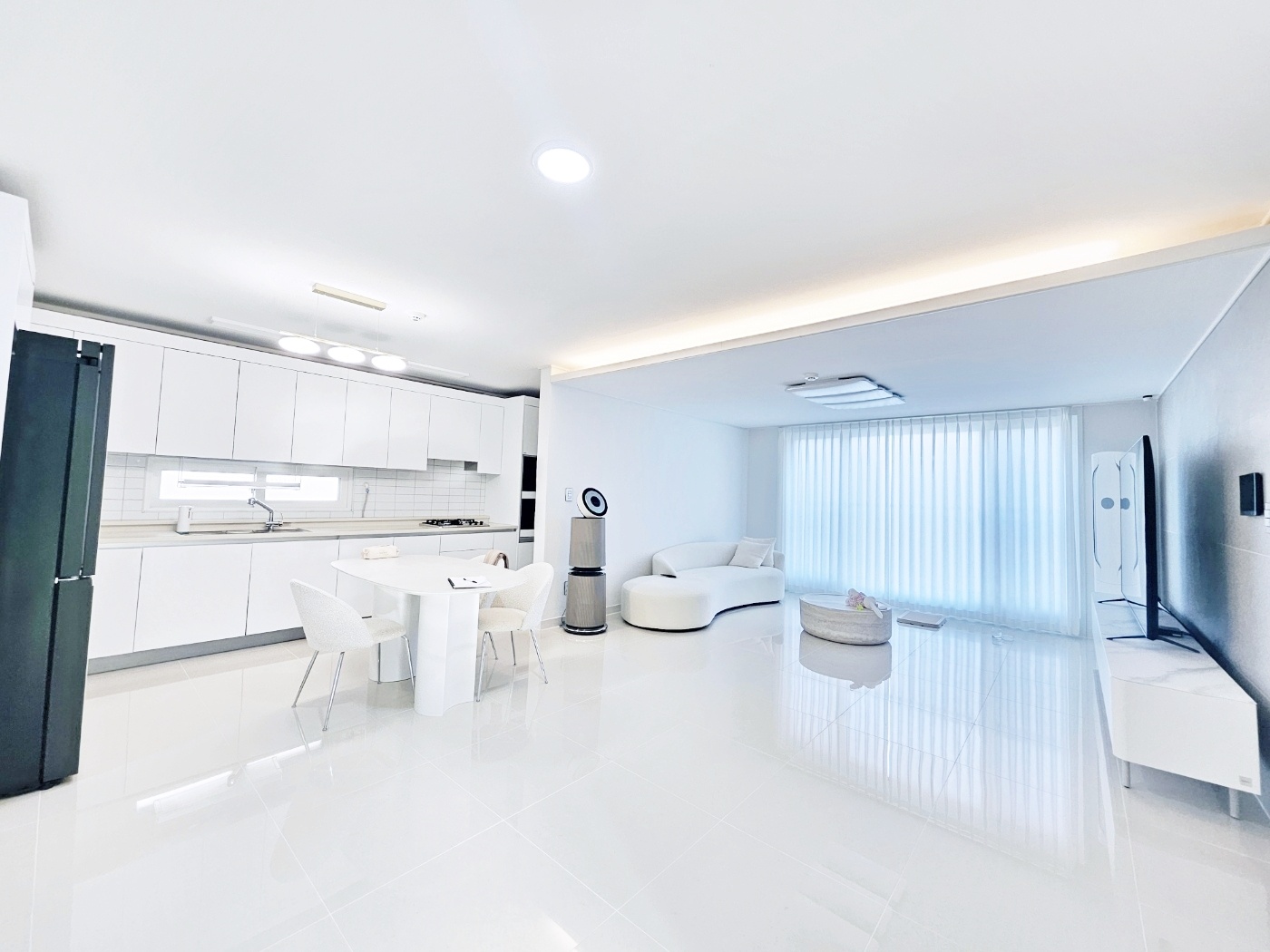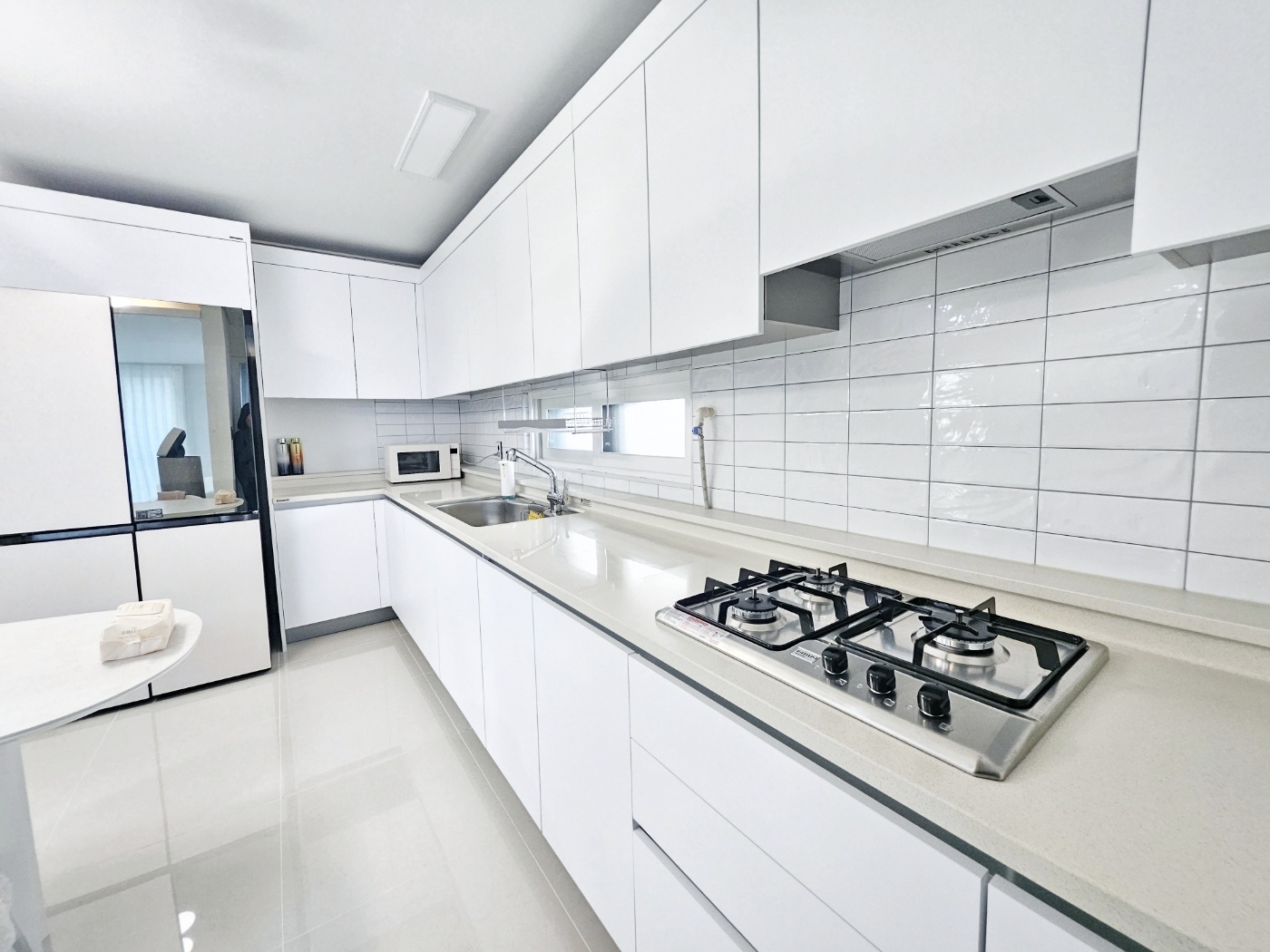 & 대리석 바닥에 화이트 모던 스타일 입니다.