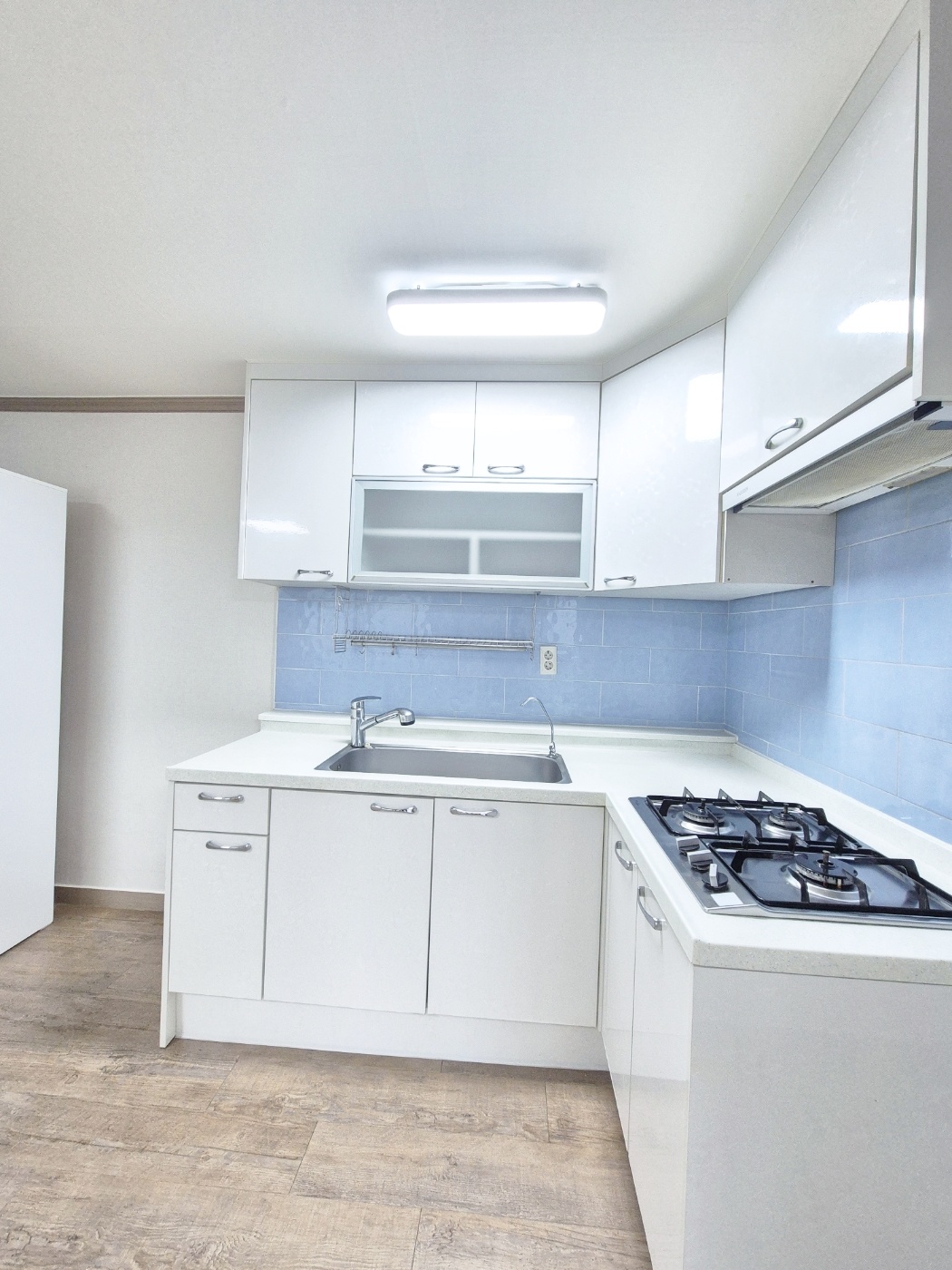 □ 싱크재구조는 ㄱ억자 구조이며 전자렌지,밥솥수납장이 있어요