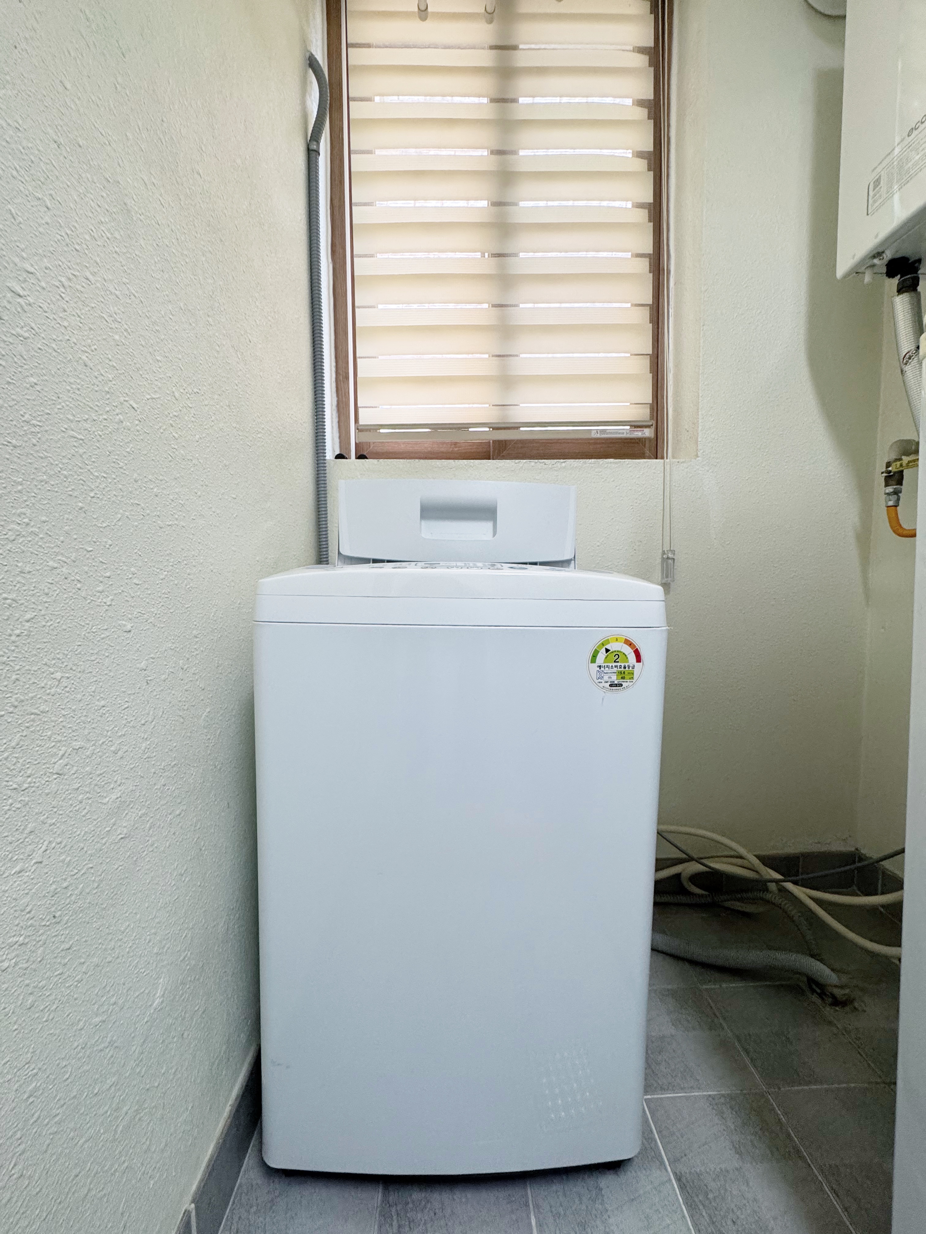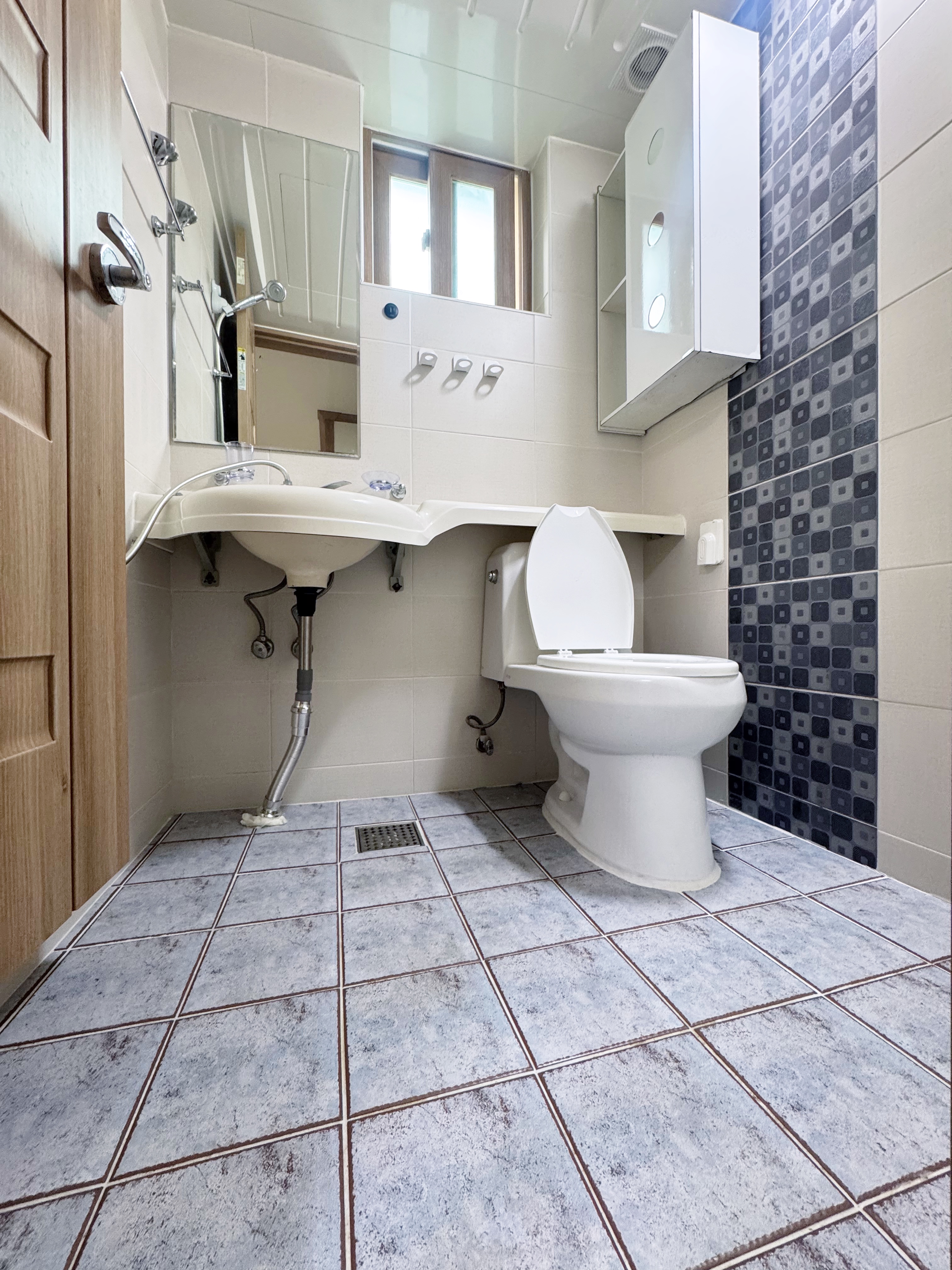 O화장실에 창문이 있어 환기도 잘되고 깔끔합니다