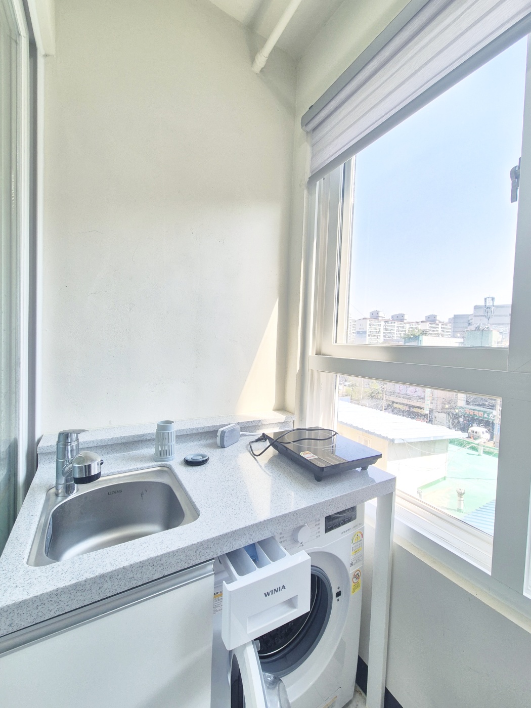◑ 분리형 주방이며 화이트톤입니다